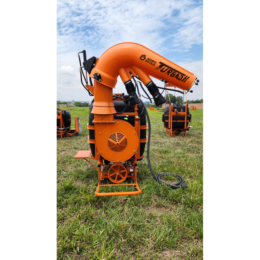 A turbina e hélice centrífuga em aço carbono proporcionam excelente fluxo de ar e distribuição uniforme da calda, enquanto os bicos cerâmicos e a serpentina em latão anticorrosivo asseguram resistência e desempenho superior mesmo nas condições mais exigentes. O direcionamento do duto semi-hidráulico facilita o ajuste e melhora a aplicação, tornando este modelo uma solução completa para pequenas e médias propriedades.